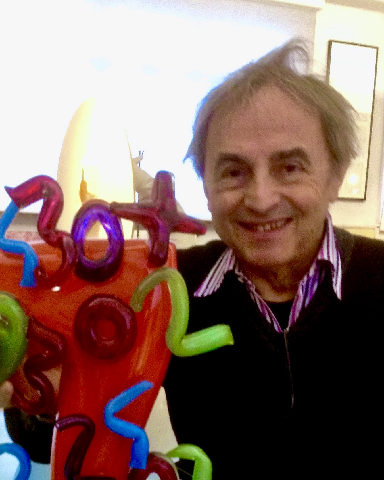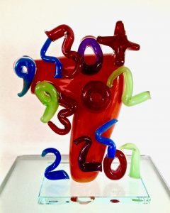 Un’opera originale di Ugo Nespolo, vetro soffiato.
