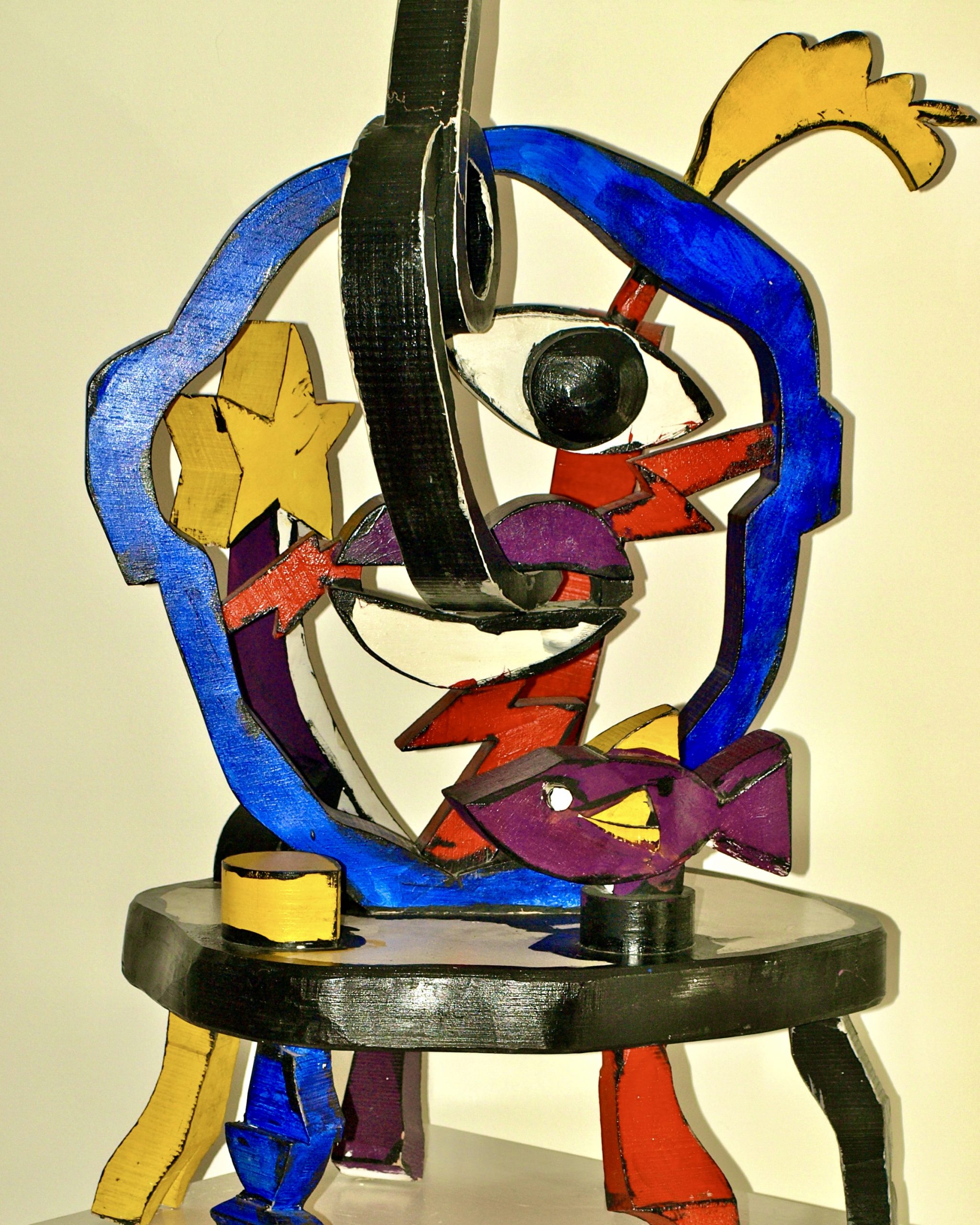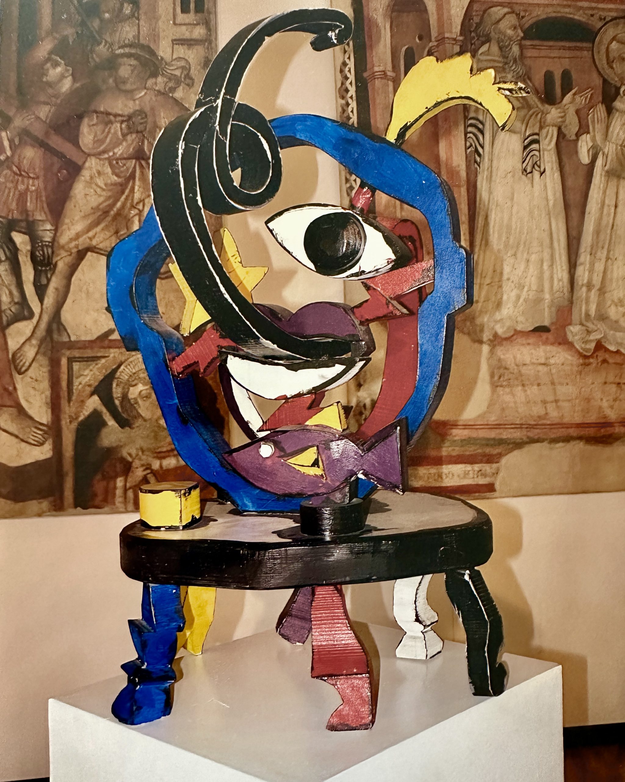 Un’opera originale di Ugo Nespolo, acrilici su legno.