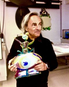 Un’opera originale di Ugo Nespolo, vetro soffiato.